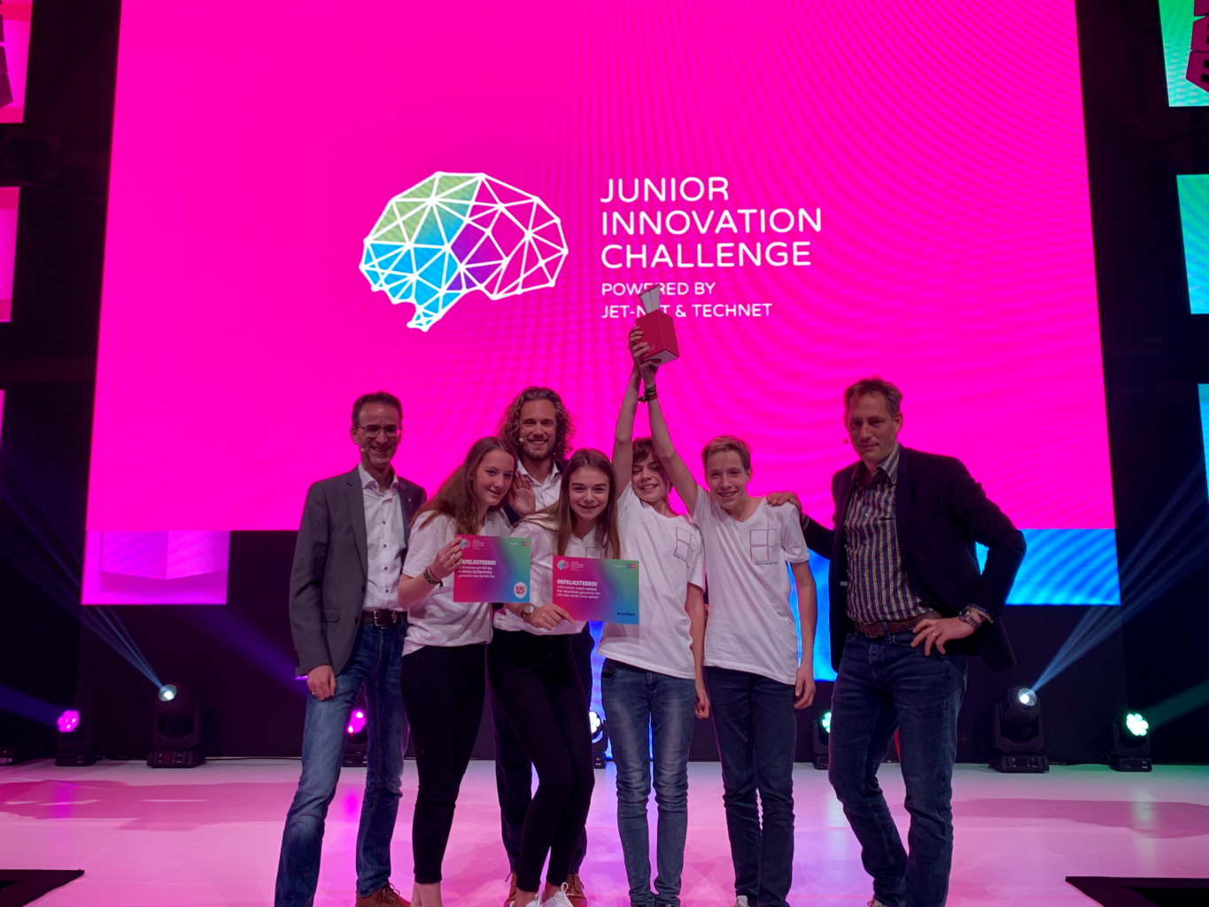 Evi, Bram, Luuk en Valerie uit klas 3VA hebben de landelijke finale van de Junior Innivatio Challenge gewonnen. Je kon hier eerder al over lezen in de weekbrief.