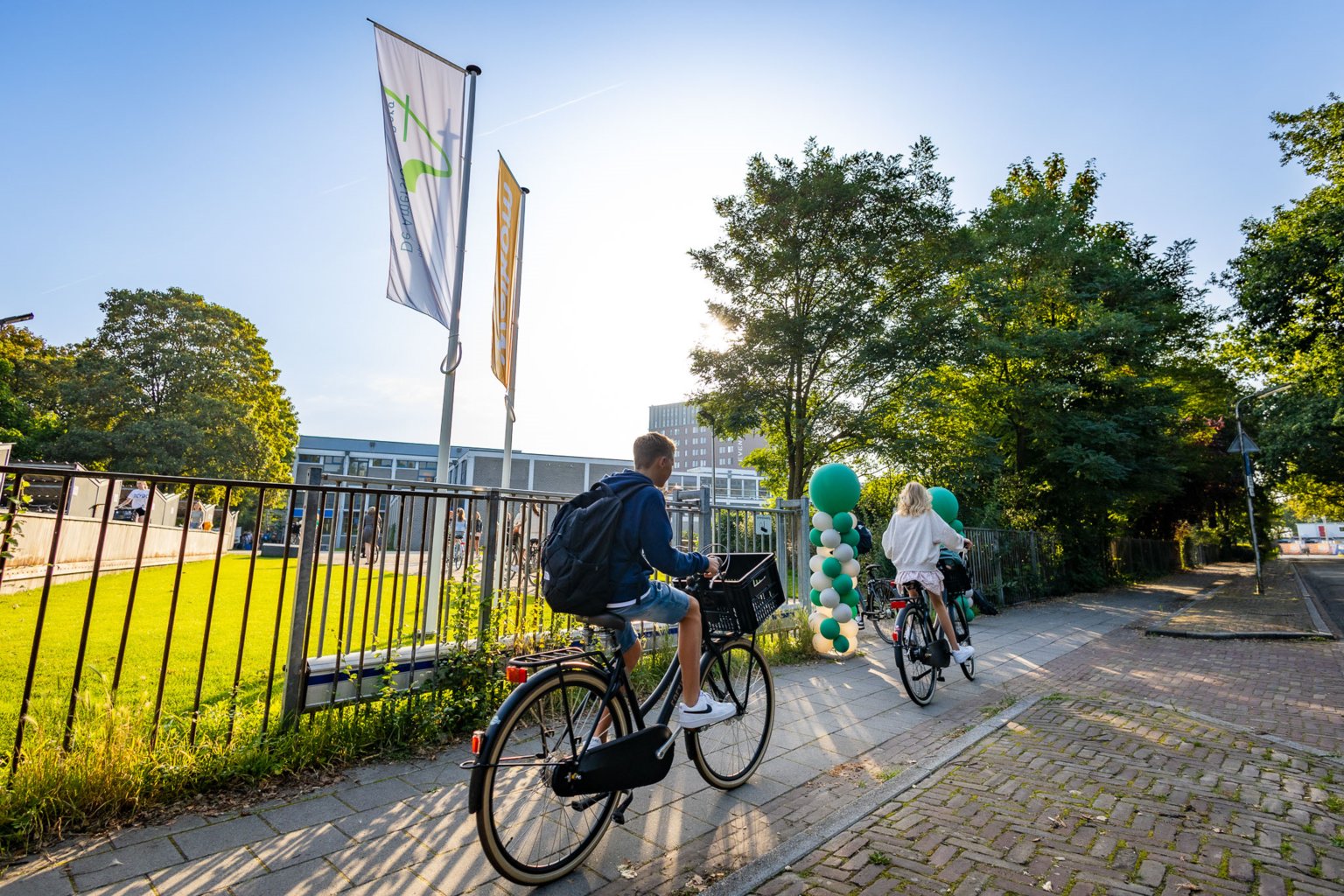Een nieuw gebouw brengt ook nieuwe gebruiken en afspraken met zich mee. Eén daarvan is de verdeling van de fietsen en scooters over de beschikbare ruimte. In de eerste week hebben we in praktijk getest welke verdeling het best gebruik maakt van de beschikbare ruimte. Dat heeft ertoe geleid dat we alle reguliere fietsen in de overdekte fietsenstalling plaatsen.