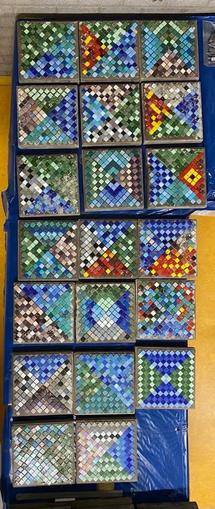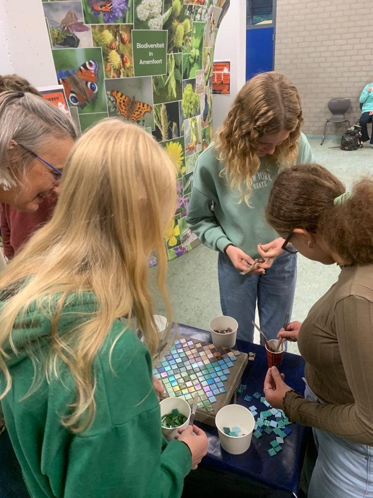 Onder het mom van “iedereen draagt een steentje bij aan het eigen maken van De Amersfoortse Berg op de nieuwe locatie”, maken de leerlingen van klas 1 t/m 3 deze week een “schoolmozaïek”. In de hal staan werktafels, waar elke klas een aantal stoeltegels met mozaïek versieren. De stoeptegels gaan we buiten een mooie plek geven.